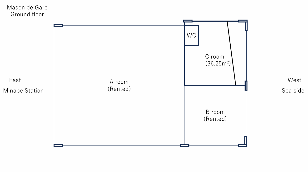 C roomは美容室やお菓子屋さんに向いている部屋です。ビル自体に店舗用駐車場を完備しているので車でお越しの際も困る事はありません。のんびりみなべLifeを満喫したい方は是非ご連絡ください。